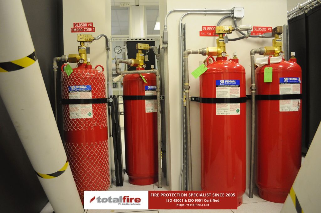 - FM200 (HFC-227ea): Sangat efektif untuk ruang server dan panel kontrol karena tidak menghantarkan listrik.