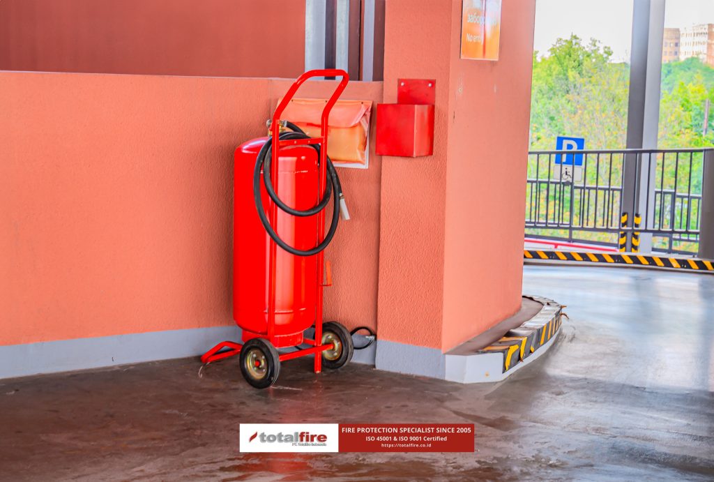 APAR wajib tersedia di setiap jarak tertentu sesuai regulasi K3. Penting untuk dipahami bahwa APAR sejatinya bukan alat untuk memadamkan kebakaran besar. Fungsi utamanya adalah memadamkan api pemula atau sebagai alat bantu personel untuk membuka jalan keluar saat terjebak dalam kobaran api.